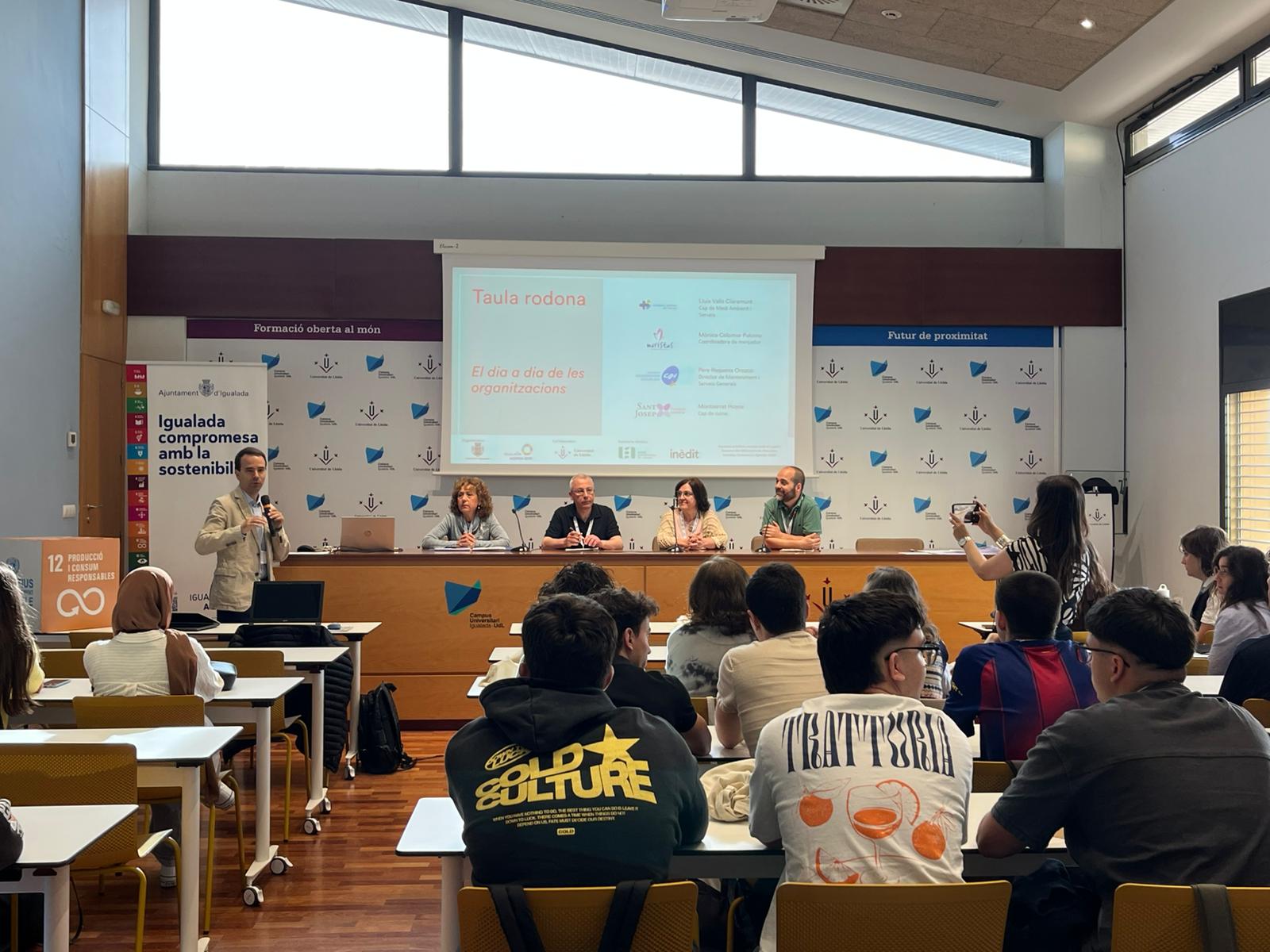 La sessió s’ha desenvolupat al mateix campus amb la participació d’estudiants de tercer curs d’Enginyeria Química, empreses i entitats del territori, en un espai de treball compartit que ha afavorit la col·laboració entre administració, universitat i teixit productiu. Hi han participat el Col·legi Maristes Igualada, el Consorci Sanitari de l’Anoia, el Consorci Sociosanitari d’Igualada i la Fundació Sant Josep, aportant la seva experiència en la gestió de menjadors col·lectius.